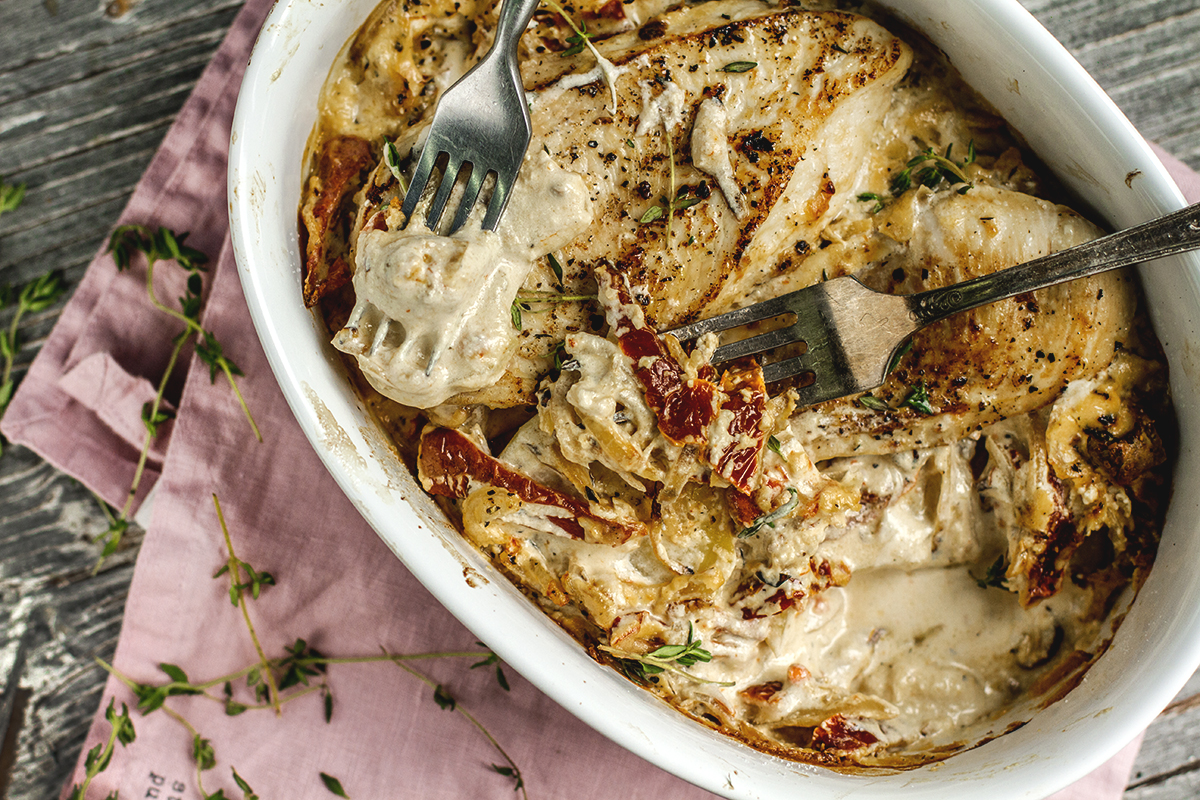 Этот потрясающий рецепт куриных грудок по-милански в сочетании с картофельным гарниром станет настоящим украшением вашего стола. Нежное куриное мясо, пропитанное сливочным соусом с вялеными томатами, в сочетании с запечённым картофелем — приготовьте блюдо, которое приятно удивит ваших близких.