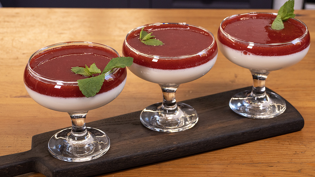 Когда панна-котта застынет, аккуратно заполните креманки ягодной смесью и добавьте для украшения свежие листья мяты. Подайте этот легкий десерт к столу и наслаждайтесь им в компании близких! Приятного аппетита!