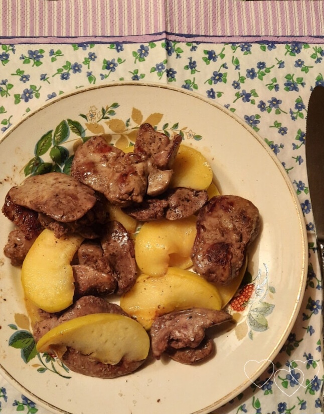 Для этого рецепта понадобятся всего лишь 500 г куриной печени и 2 зелёных кислых яблока. Минимум ингредиентов - максимум вкуса!