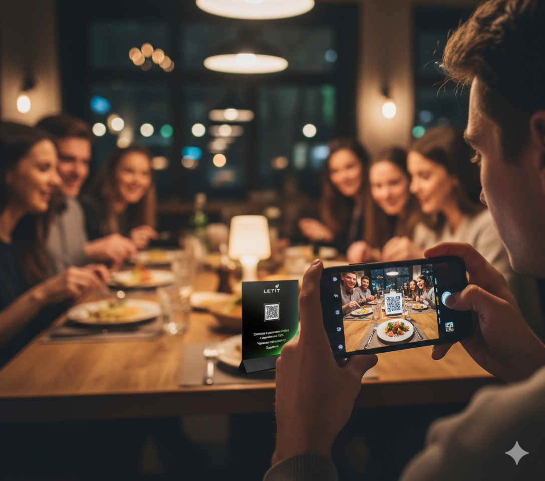 Современные платформы, как LETIT CONNECT, объединяют не только процесс оплаты, но и маркетинг. Например, гость может сканировать QR-код на столе или чеке и: