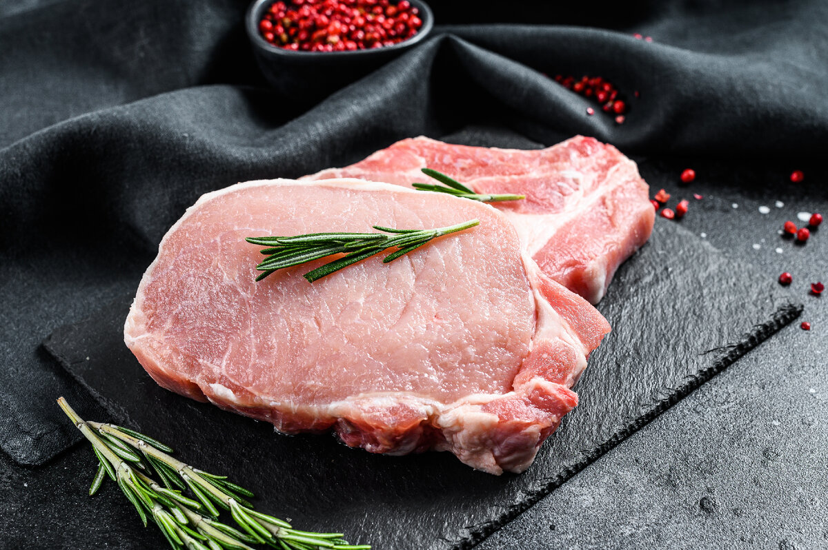 - Свиную корейку нарезать на куски толщиной около 0,8–1,0 см.