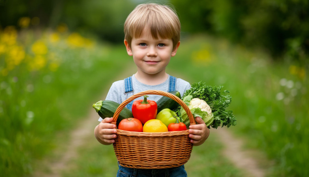 Правильное питание — это основа здоровья ребенка. Овощи и фрукты являются обязательной частью рациона, обеспечивая получение необходимых витаминов и минералов, что делает питание полноценным.