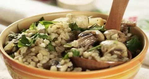 3. В завершение смешать жареные грибы с готовой перловкой. Блюдо можно украсить свежей зеленью по желанию.