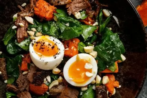 Тыкву очистить, нарезать кубиками, посолить и готовить на пару 20–25 минут при температуре 100 градусов. Яйцо стоит отварить в кипящей воде на протяжении 5 минут и затем охладить в холодной воде, чтобы желток остался слегка сыроватым.