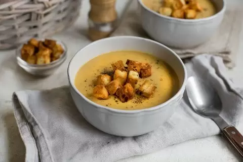 Сырный суп-пюре с куриным филе и хрустящими сухариками — это настоящее кулинарное произведение искусства, восходящее к античным временам. Древние греки обожали сыр, приписывая ему почти божественную сущность. По одной из легенд, богиня охоты Артемида научила людей секрету его производства. Сырный суп впервые стал известен именно в Древней Греции и быстро завоевал популярность, став почти символом Олимпийских игр. Это блюдо не просто утолит голод, но и наполнит силой и энергией, особенно в сочетании с нежным куриным филе и хрустящими сухариками!