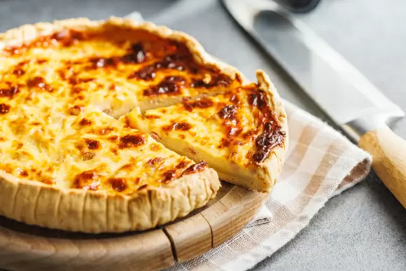 Для начала готовится тесто. Его необходимо замесить из муки, соли и масла с добавлением ледяной воды, а затем оставить в холодильнике. Лук, предварительно нарезанный, тушится в масле до мягкости, а в это время готовится сливочная масса – все ингредиенты взбиваются в блендере. Затем укладывается начинка, состоящая из бекона и тушеного лука, и все заливается сливочной смесью. Выпекается при низкой температуре до золотистой корочки.