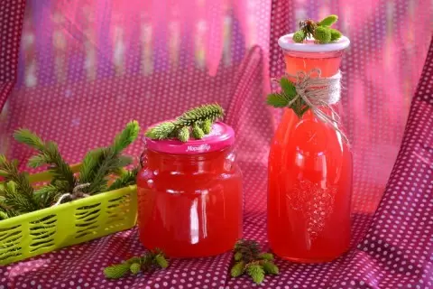 - Необходим 1 литр молодого (светлого) елового прироста.