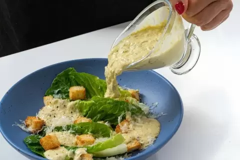 Теперь заправка готова. Используйте ее для создания классического салата «Цезарь», сохранив часть соуса для подачи отдельно. Этот рецепт не просто делает блюдо вкуснее, но и придаёт ему оригинальность и шарм. Наслаждайтесь великолепным сочетанием ингредиентов и поразите ваших близких своим кулинарным мастерством!