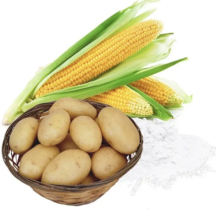 Картофель — популярный источник крахмала, но не единственный. В картофеле его содержание составляет около 24%. На первом месте по этому показателю — рис, в котором крахмала до 75%. Следом идут кукуруза с 70% и пшеница с 64%.