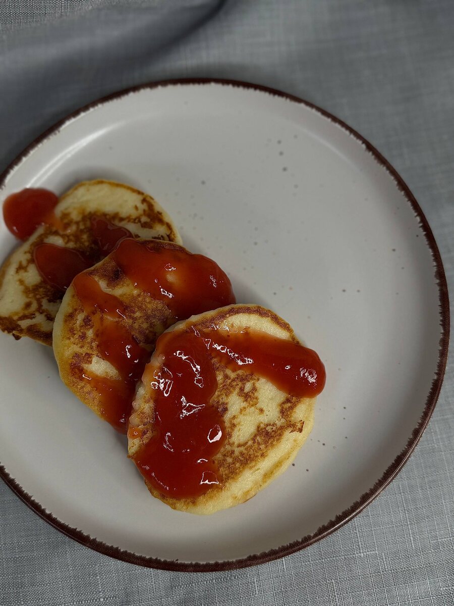 В завершение полить оладьи низкокалорийным клубничным топпингом, чтобы вкус стал еще более ярким и выразительным. Эти оладьи станут идеальным вариантом как для завтрака, так и для десерта в любое время суток.