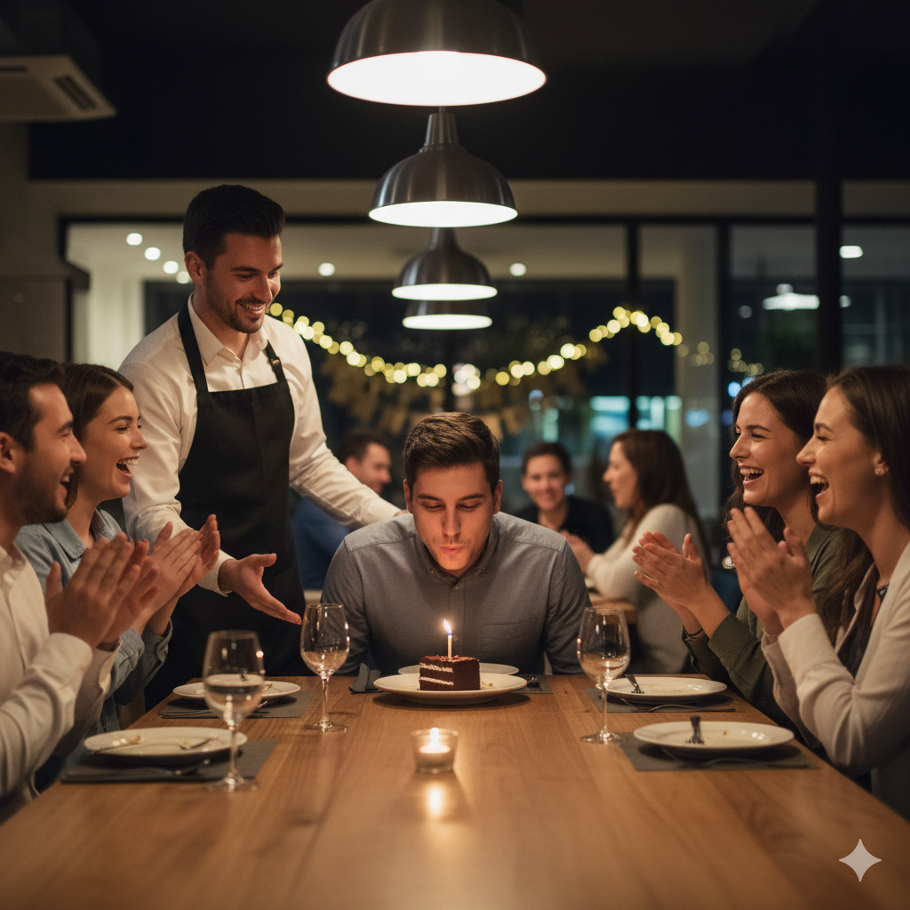 Такой подход превращает обычное поздравление в увлекательное и активное взаимодействие, создающее живую атмосферу и влекущее гостей вновь посещать ресторан.