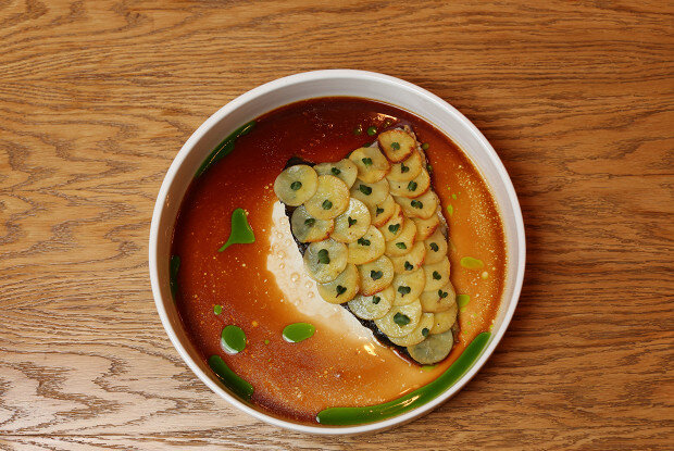 Лук разрезать пополам и разместить на пергаменте. Поместить в предварительно разогретую духовку (180°C) на час, пока лук не запечется и не потемнеет. Затем поместить лук в сотейник, добавить литр воды и варить на среднем огне до уменьшения объема до 150 мл. Процеженный сок смешать с сахаром и соевым соусом, посолить и поперчить по вкусу.Подготовить карпа: разрезать брюхо, аккуратно выпотрошить и промыть. Срезать голову и плавники, удалить чешую. Извлечь филе, аккуратно следуя вдоль позвоночника. Удалить ребра и проверить филе на наличие костей.Филе карпа посолить и поперчить с обеих сторон, полить растительным маслом и оставить мариноваться на час. Сделать на коже насечки для равномерного прогрева во время запекания.Нарезать картофель на тонкие слайсы и вырезать из них кружки. Выложить их на рыбу, имитируя чешую, и смазать растопленным сливочным маслом.Поместить карпа в духовку, разогретую до 180°C, на 25 минут. При подаче полить соусом и добавить зелень для украшения.Приготовление карпа по-чешски — это не только кулинарное искусство, но и возможность порадовать близких удивительным блюдом, полным вкуса и аромата. Приятного аппетита!