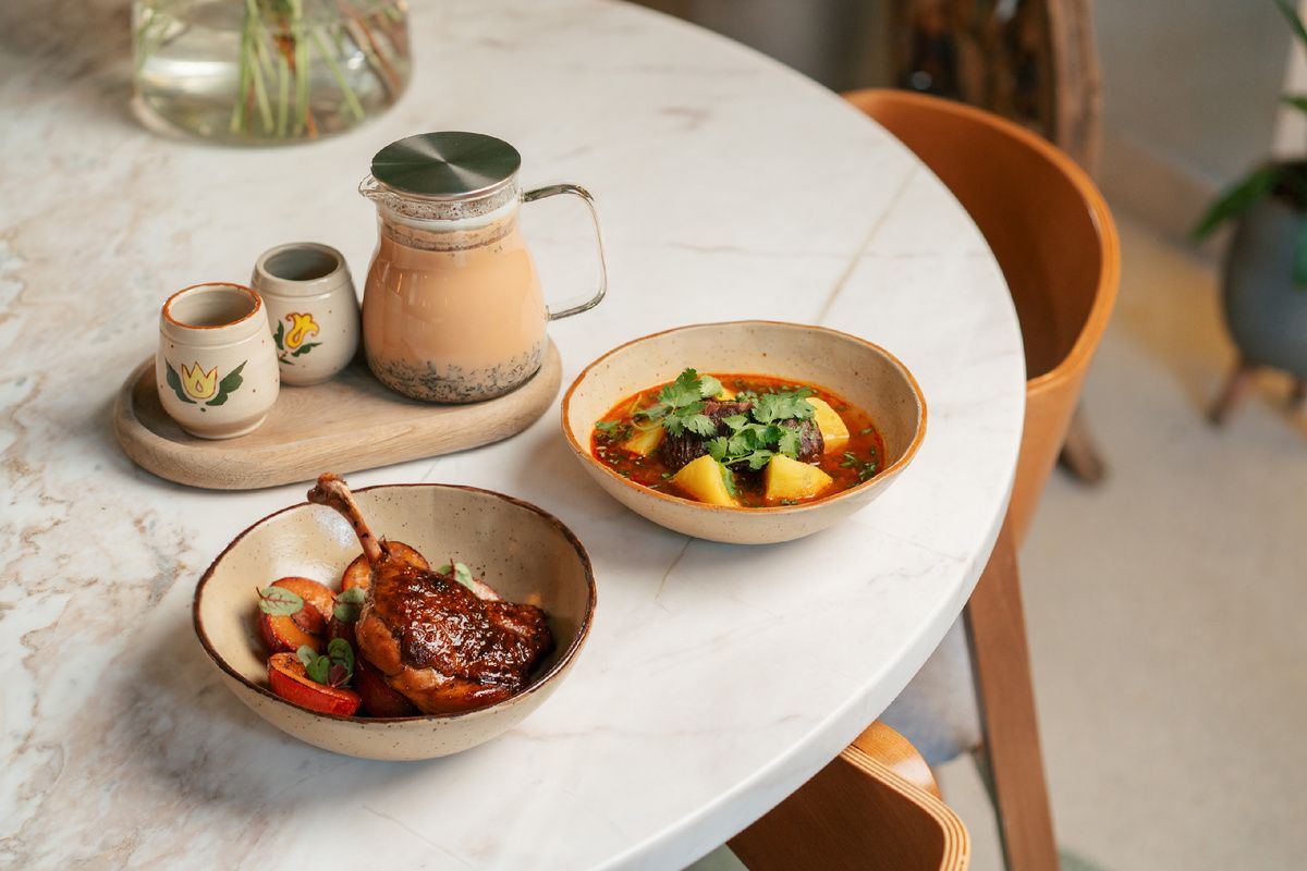 В этом гастрономическом предложении представлены три фирменных блюда, каждое из которых способно согреть в холодное время года и подарить уютный праздничный настрой. Первым среди них является шурпа, приготовленная на наваристом бульоне из конины, дополненная фермерским картофелем и ароматным запечённым перцем. Простота ингредиентов складывается в палитру неповторимого вкуса, создающего атмосферу тепла. Следующим на очереди — запечённая утиная ножка, которая возвращает к воспоминаниям о семейных праздниках. Это блюдо приготовлено с добавлением слив, карамелизированных с медом, что придаёт ему особую изюминку. Как завершающий штрих, утоляющий жажду в зимний вечер, подают крепкий чай с душистыми травами и молоком — идеальный финал домашнего застолья.