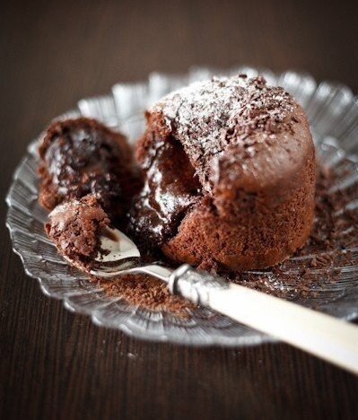 Выпекать в течение 17-20 минут. Готовые фонданы украсить тертым шоколадом и сахарной пудрой. Подавать горячими, идеальны с шариком ванильного мороженого.