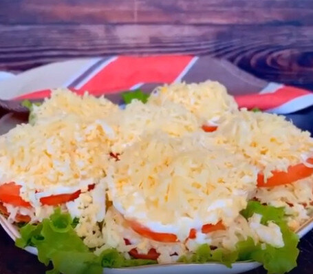 Для начала, помидоры нужно нарезать тонкими кольцами и слегка посолить, чтобы они пустили сок. В отдельной миске смешать майонез с тщательно измельченным чесноком — это придаст закуске неповторимый вкус. Сыр и яйца нужно натереть на мелкой терке.