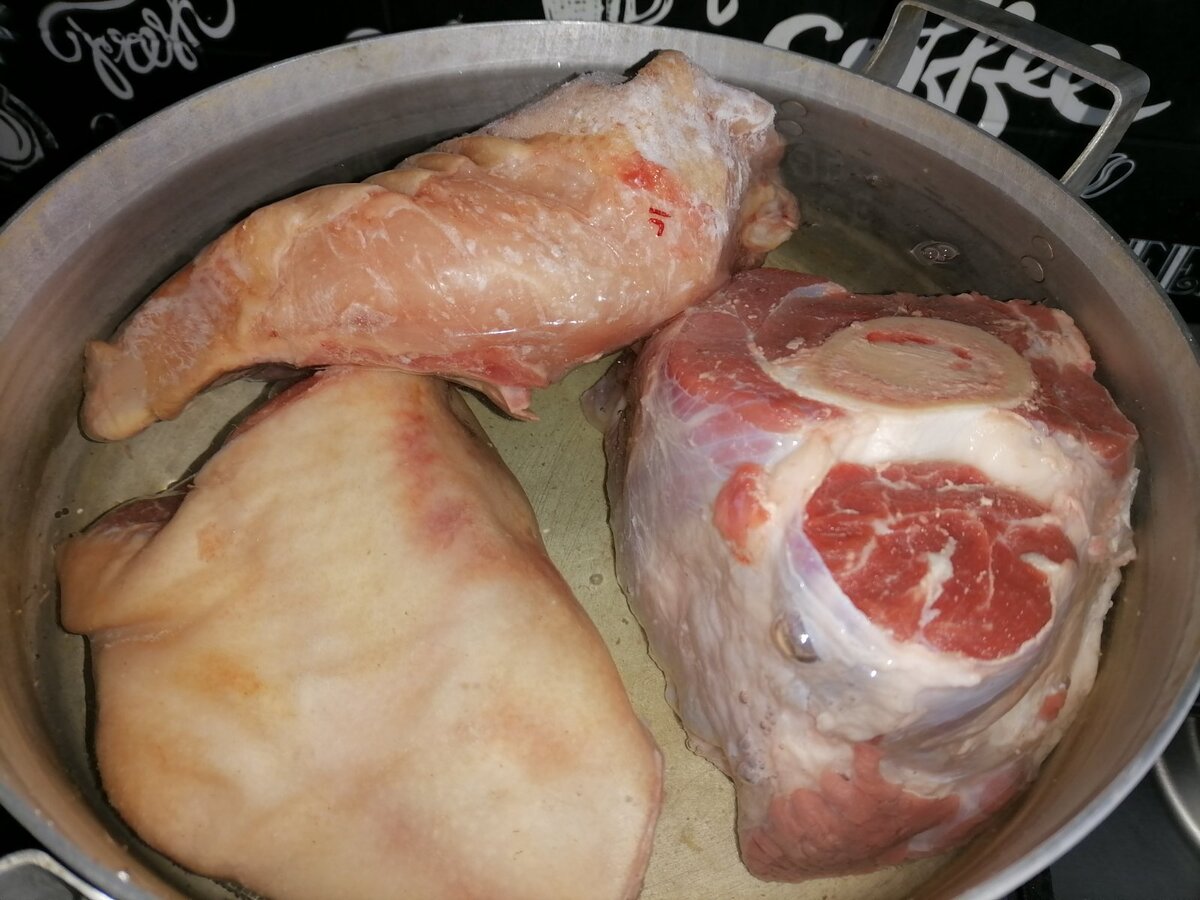 - Свинина для бульона (ножки или рулька) — 800 г;