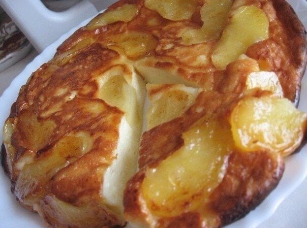 3. Когда яблоки будут готовы, залейте их приготовленным тестом. Удерживайте на огне еще несколько минут, после чего отправляйте сковороду в предварительно разогретую до 200 градусов духовку. Выпекайте до появления золотистой корочки.