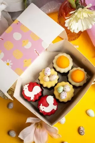 Пекарня также предлагает набор канеле в количестве шести штук за 1850 рублей, которые напоминают об образе курицы — символе новой жизни. В каждой из канеле собраны три уникальных вкуса: