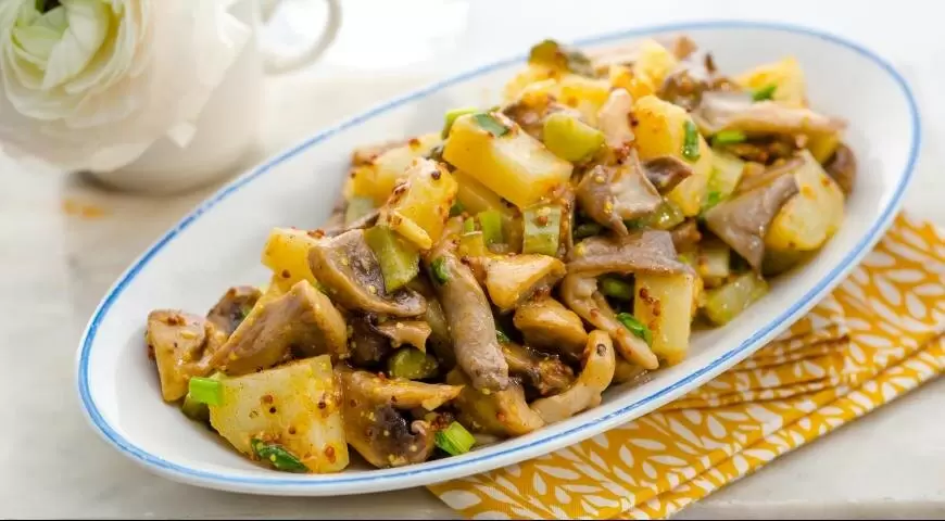 Постный салат с грибами — это интересная интерпретация привычного немецкого картофельного блюда, но без прослойки бекона. Несмотря на отсутствие мяса, этот салат отличается удивительной насыщенностью и прекрасно подойдет для тех, кто придерживается поста или хочет разнообразить свой рацион.