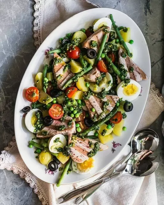 Этот яркий и свежий салат идеально подойдёт для летнего обеда или ужина. Он сочетает в себе множество полезных ингредиентов, а также обладает насыщенным вкусом благодаря обжаренному на гриле тунцу. Удивите своих близких этим восхитительным блюдом!