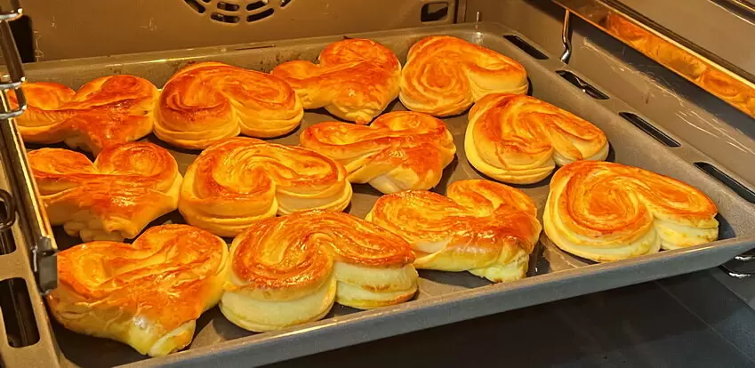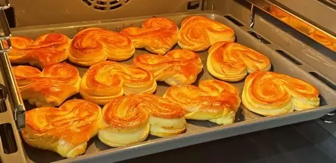 Когда тесто хорошо поднялось, следует разделить его на 12 равных частей и сформировать небольшие шарики. Каждый шарик нужно раскатать в тонкий овал и смазать растительным маслом. Затем равномерно распределите немного сахара по тесту и сверните его в рулет. После этого рулет необходимо разрезать пополам вдоль и аккуратно развернуть, придавая ему форму сердца.