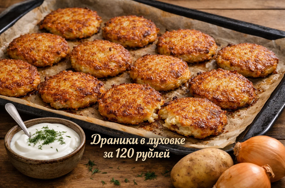 Готовые драники подаются горячими с сметаной или другим соусом. Эти золотистые оладьи быстро завоюют симпатии всей семьи, а себестоимость в 120 рублей делает их идеальным решением для budget-friendly ужина.
