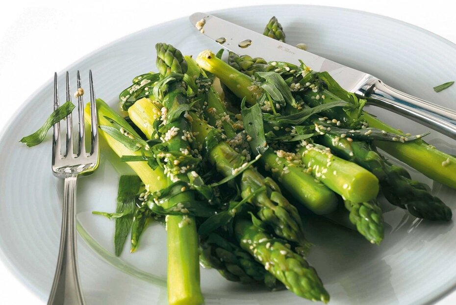 Этот легкий и ароматный салат идеально подходит для приятного обеда или легкого ужина. Спаржа, заключенная в свежем соусе с нотками эстрагона и кунжутного масла, станет настоящей находкой для любителей овощных блюд.