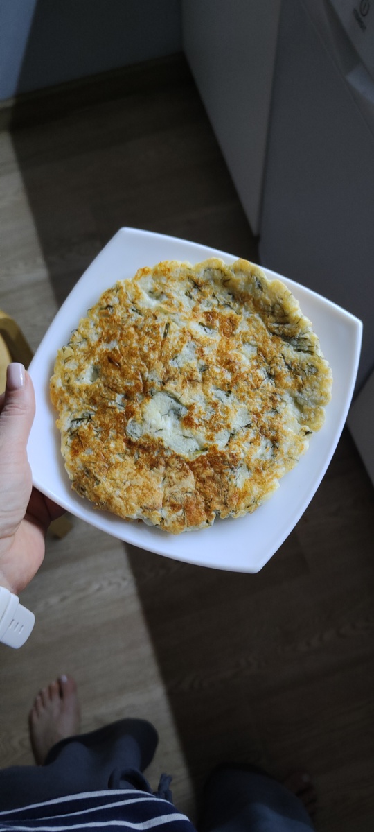 Все ингредиенты нужно тщательно перемешать и выпекать в виде лепешки на сковороде с обеих сторон до золотистой корочки.