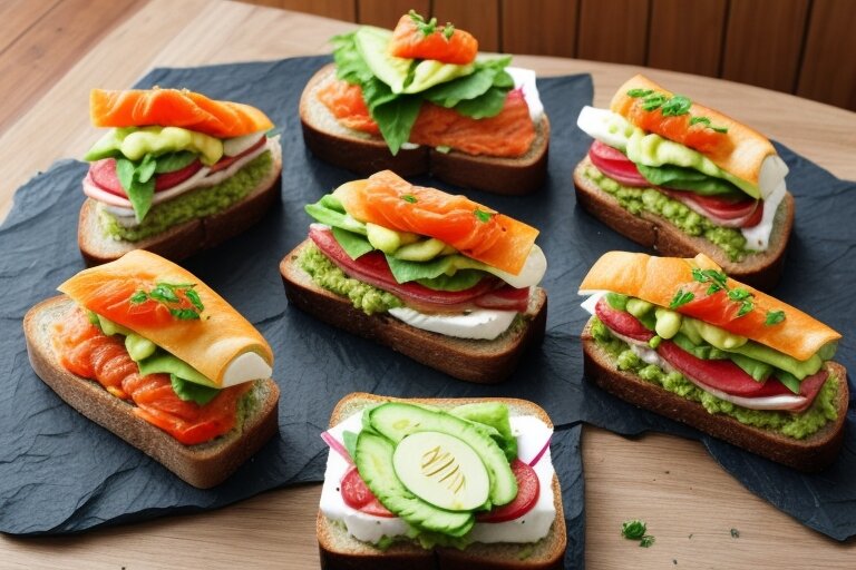 1. Сэндвич с лососем и гуакамоле на черном хлебе