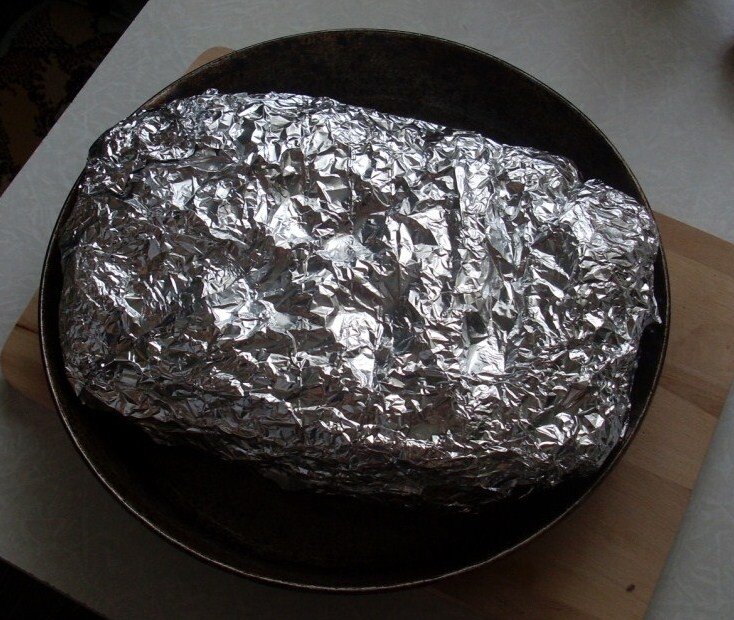 Свинину промыть в теплой воде, обсушить и натереть солью и перцем (по вкусу) с обеих сторон.Чеснок тонко нарезать и ввести его в мясо, делая небольшие проколы ножом, чтобы он пропитал свинину.Завернуть свинину в фольгу, используя 5–7 слоев. Важно избегать любых надрывов, чтобы сок не вытекал во время готовки.Уложить мясо на сковороду или противень и поместить в заранее разогретую духовку.В процессе готовки периодически добавлять немного горячей воды в сковороду, чтобы свинина оставалась сочной.Готовить при температуре 220 градусов в течение 2 часов.По окончании приготовления аккуратно разрезать фольгу и вынуть свинину.